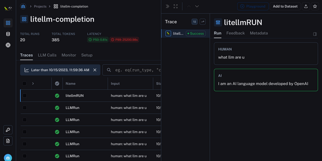 os.environ["LANGSMITH_PROJECT"] = "" # defaults to litellm-completion